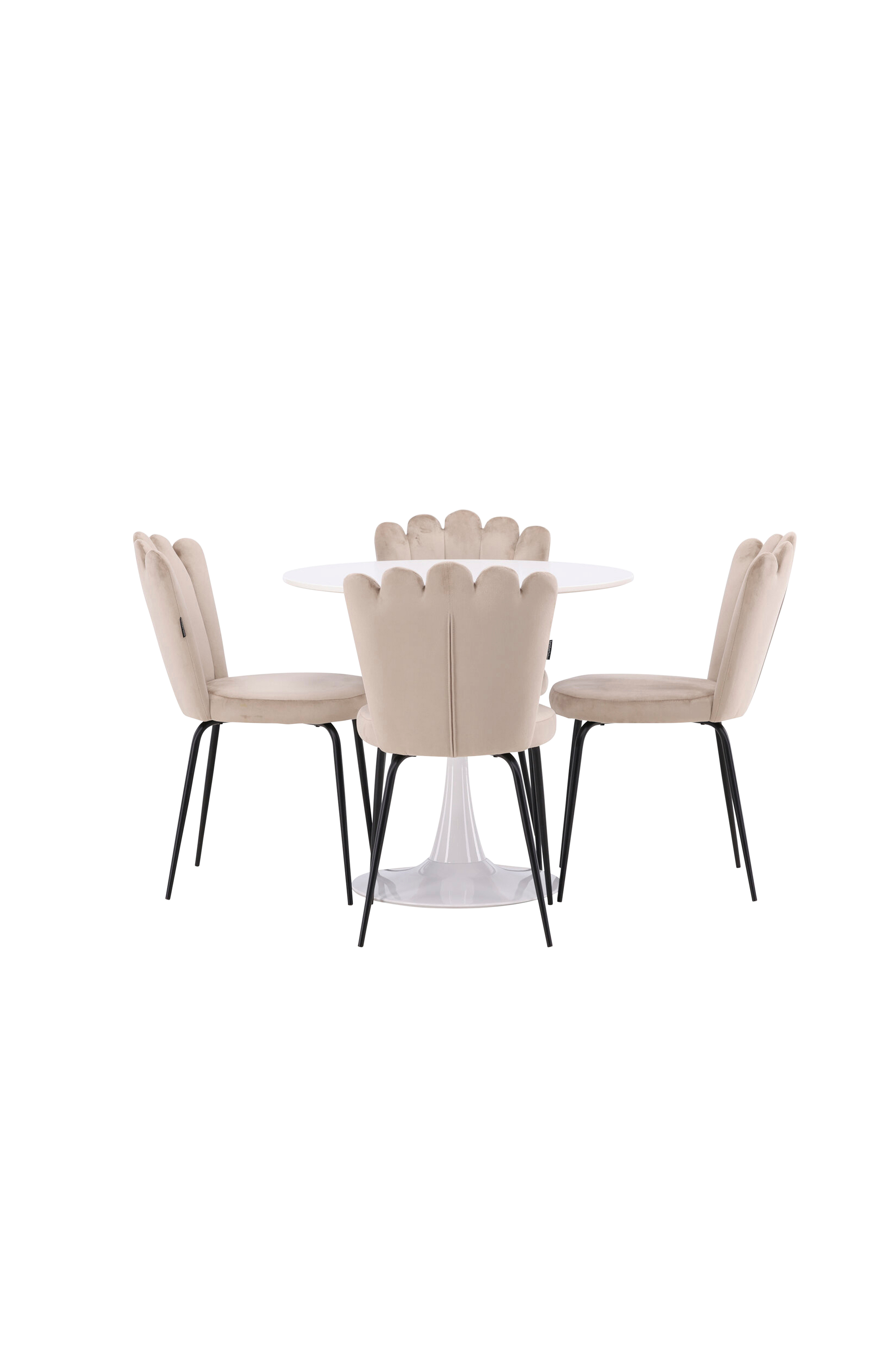 Men det er ikke kun bordet, der imponerer - Venture Designs Limhamn-stole er det perfekte supplement. Betrukket med glat velour og i en varm beige nuance tilføjer de en sofistikeret følelse til din spisestue. Deres moderne design og ergonomiske form skaber en uovertruffen siddekomfort, der gør dine måltider endnu mere behagelige.