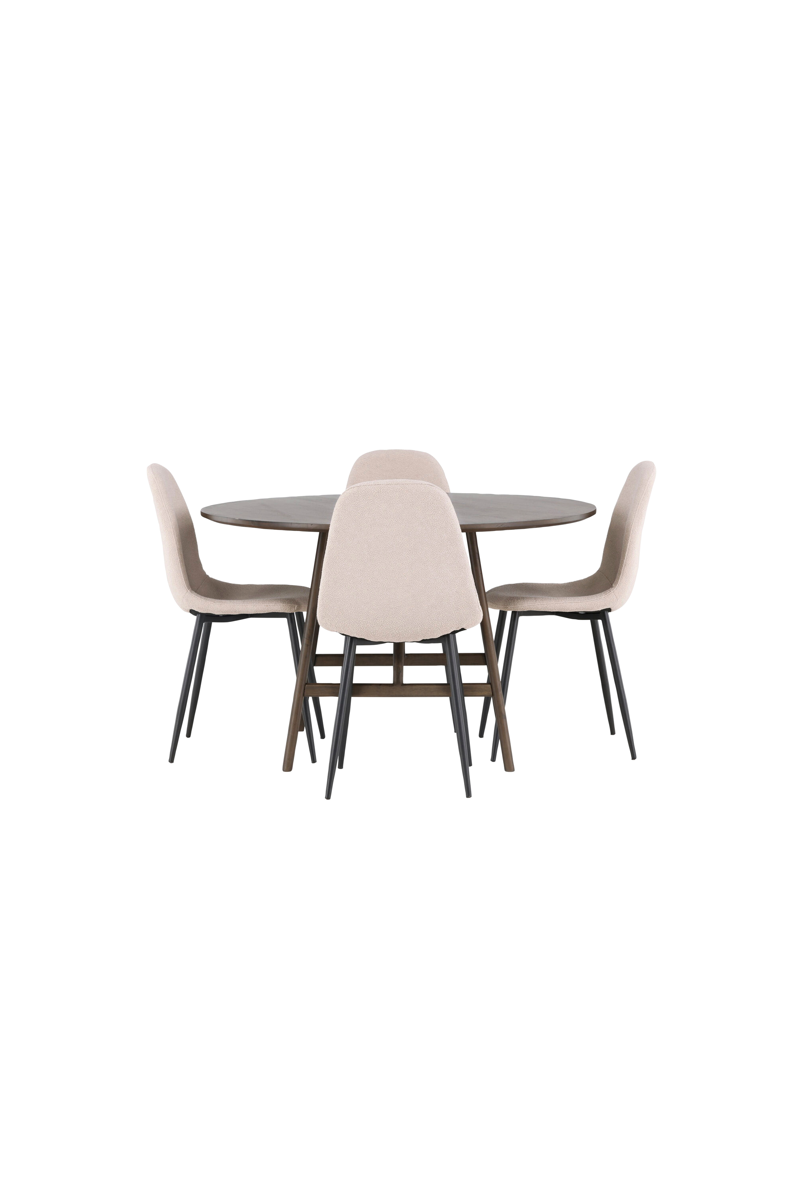 Velkommen til et nyt niveau af stil og komfort med denne vidunderlige spisegruppe i jordfarver!