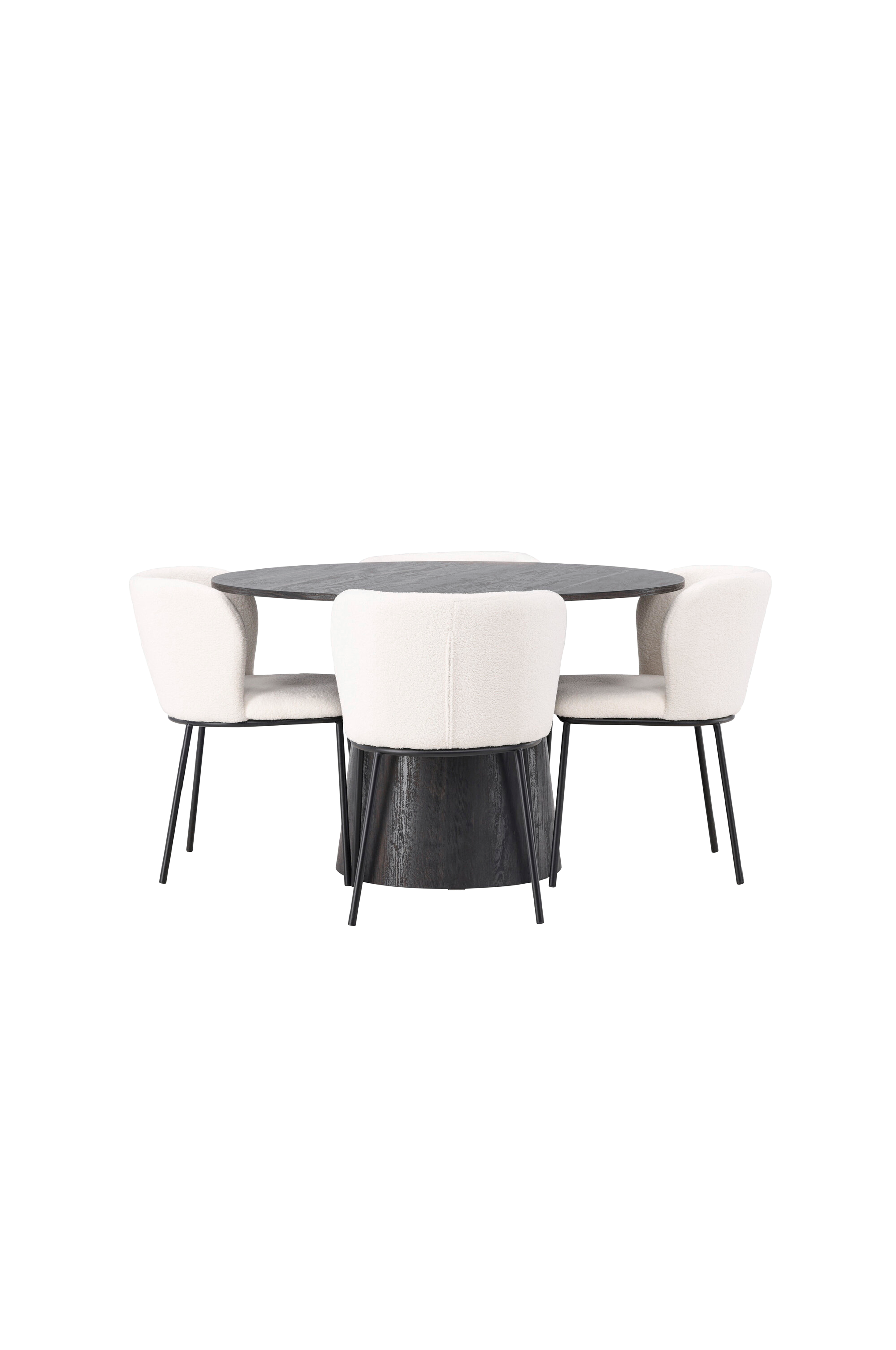 Det bliver ikke bedre end det her! Venture Designs vidunderlige, runde spisebord Lanzo har et gennemgående helhedsdesign i MDF med en tynd bordplade og et snoet cylinderformet stel, der er centreret under midten af bordet. Her i en vidunderlig kombination med stole fra Edina-serien. Stolen har et smidigt, fuldt betrukket sæde i boucléstof og minimalistiske stoleben i metal. Det stilfulde design og det behagelige sæde giver dig en komfortabel spisebordsstol, der holder tidens tand.