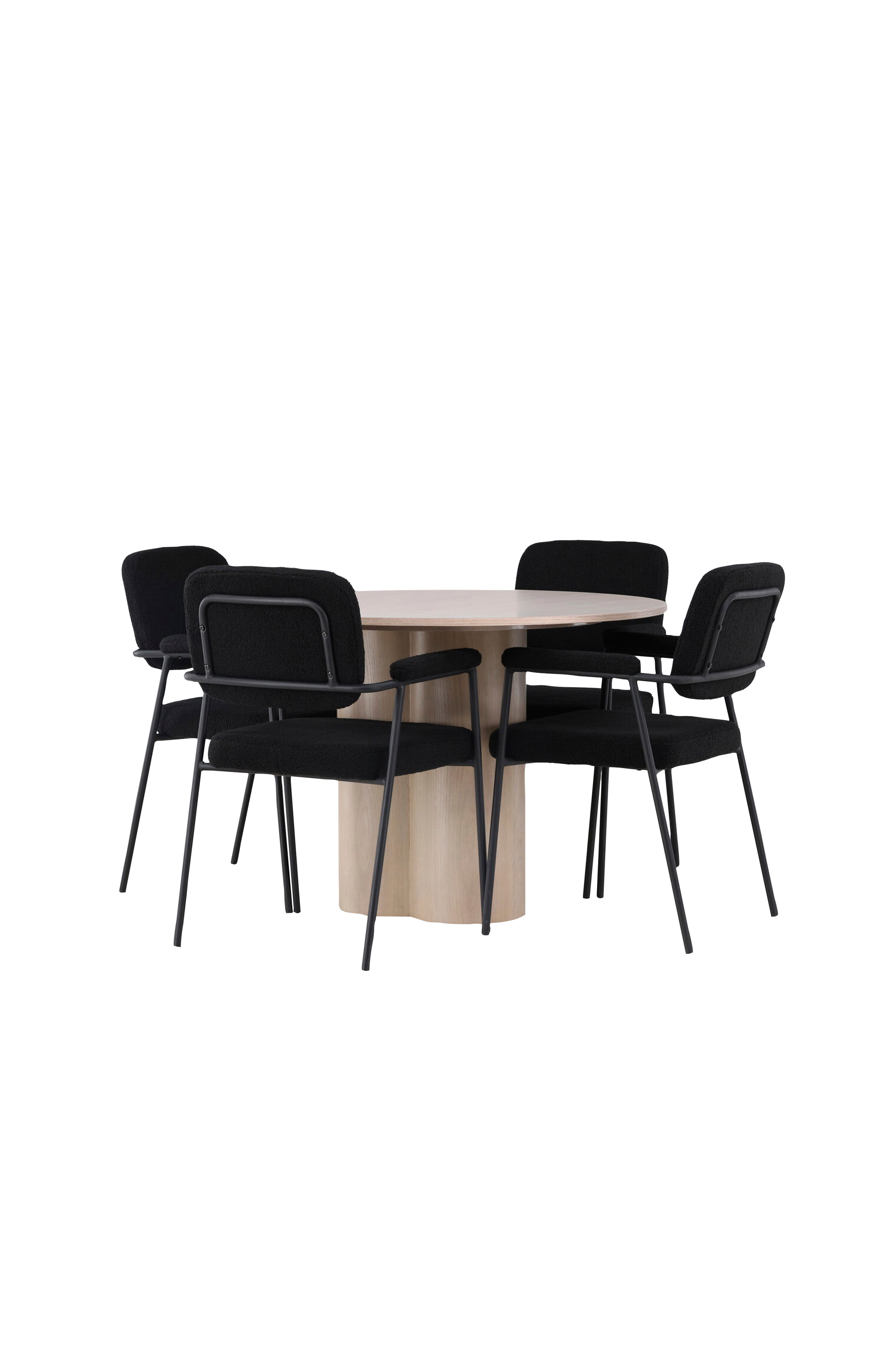 Det runde spisebord fra Olivia-serien er det perfekte valg for dig, der ønsker at tilføje noget moderne friskhed til indretningen. Med sit polerede MDF-design og tynde, runde bordplade bringer dette spisebord en luftig og moderne følelse til stuen. De tre cylinderformede ben, pænt samlet under midten af bordet, giver stabilitet og et stilrent udtryk. Her i perfekt kombination med spisebordsstole fra serien Yesterday. Stolen har et elegant skandinavisk design med et fuldpolstret sæde i boucléstof, der giver en luksuriøs og blød følelse. De smalle stoleben med integrerede metalarmlæn giver både stil og komfort.