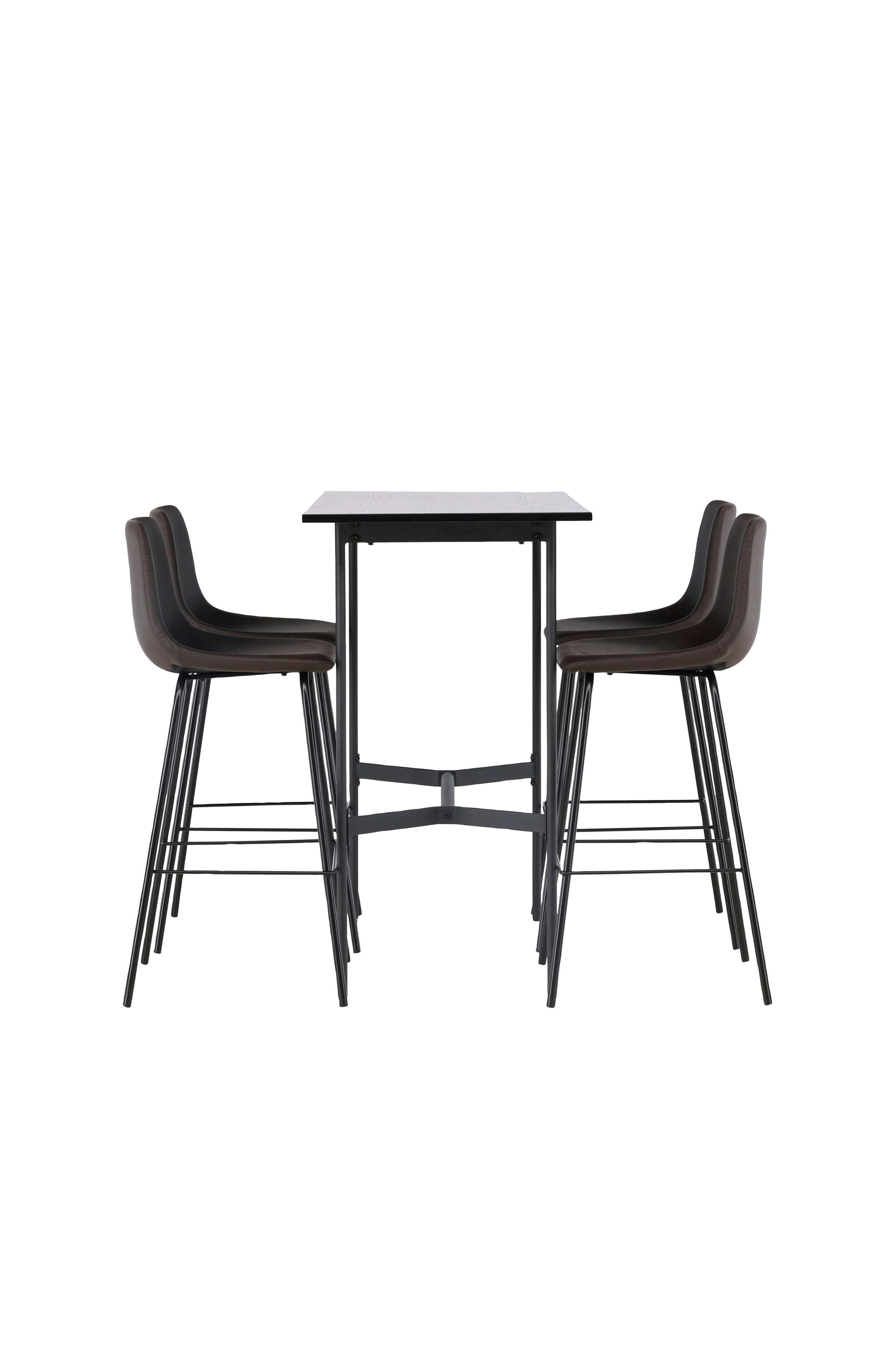 Giv din indretning et løft med en flot bargruppe! Det minimalistiske barbord Rax har en tynd MDF-bordplade og smalle bordben med integreret metal fodstøtte. Her i flot kombination med barstole fra serien Alexi. Designet er gennemtænkt med en fuldpolstret stol i polstret polyurethanlæder og polyester og et smalt benstativ i pulverlakeret metal med integreret fodstøtte for ekstra komfort.