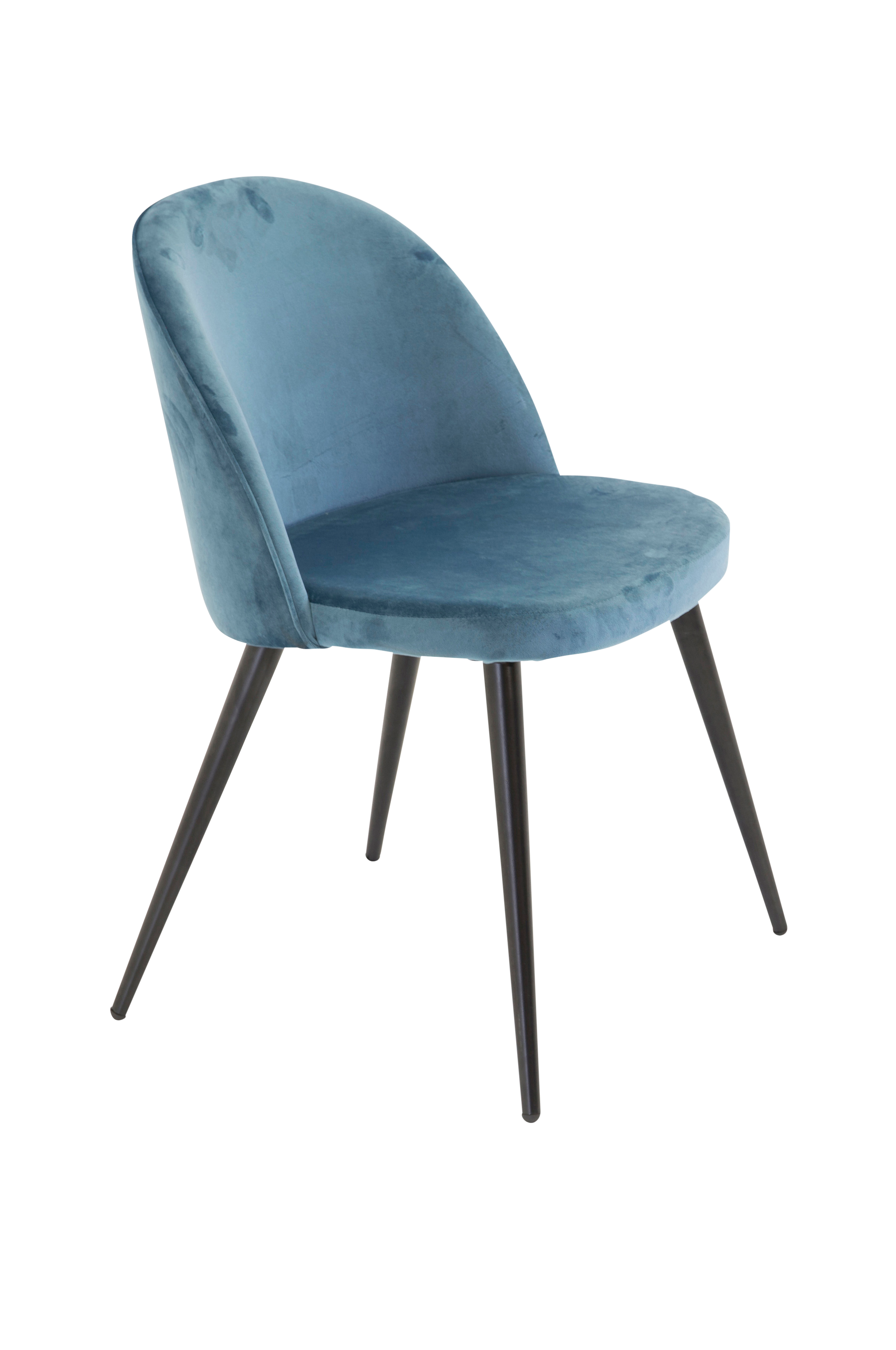 Stolen har et fuldpolstret design, ben i sort pulverlakeret metal og afrundet ryg og sæde i fløjlsstof med blød polstring. Lige så behagelig som iøjnefaldende! Lettere samling kræves.