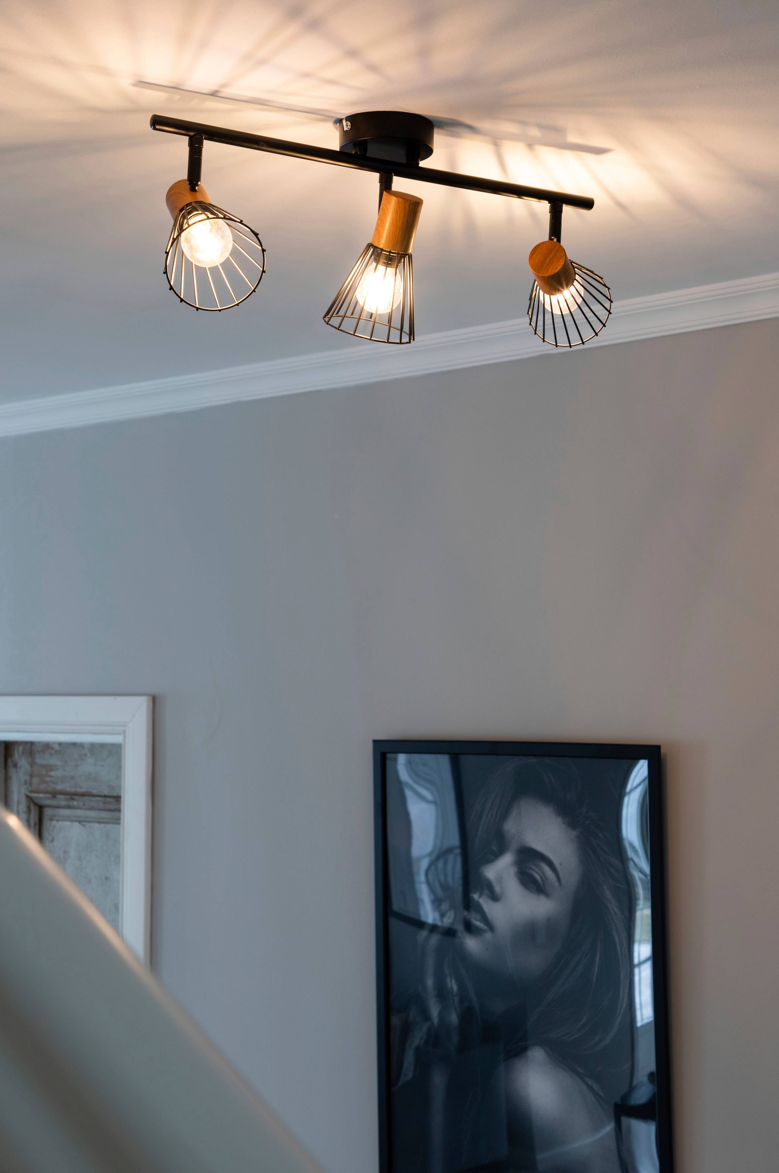 Loftlampen Atticus har et stilrent og gennemtænkt design, der passer til de fleste hjem og indretningsstile! Loftlampen har en holder i sort metal og justerbare lyskilder. Lampeskærmene har en top af valnøddefarvet sten og et fint mønster, der slipper et behageligt lys igennem. Lampen er perfekt til at placere i entreen, køkkenet eller hvor der er behov for spotbelysning.