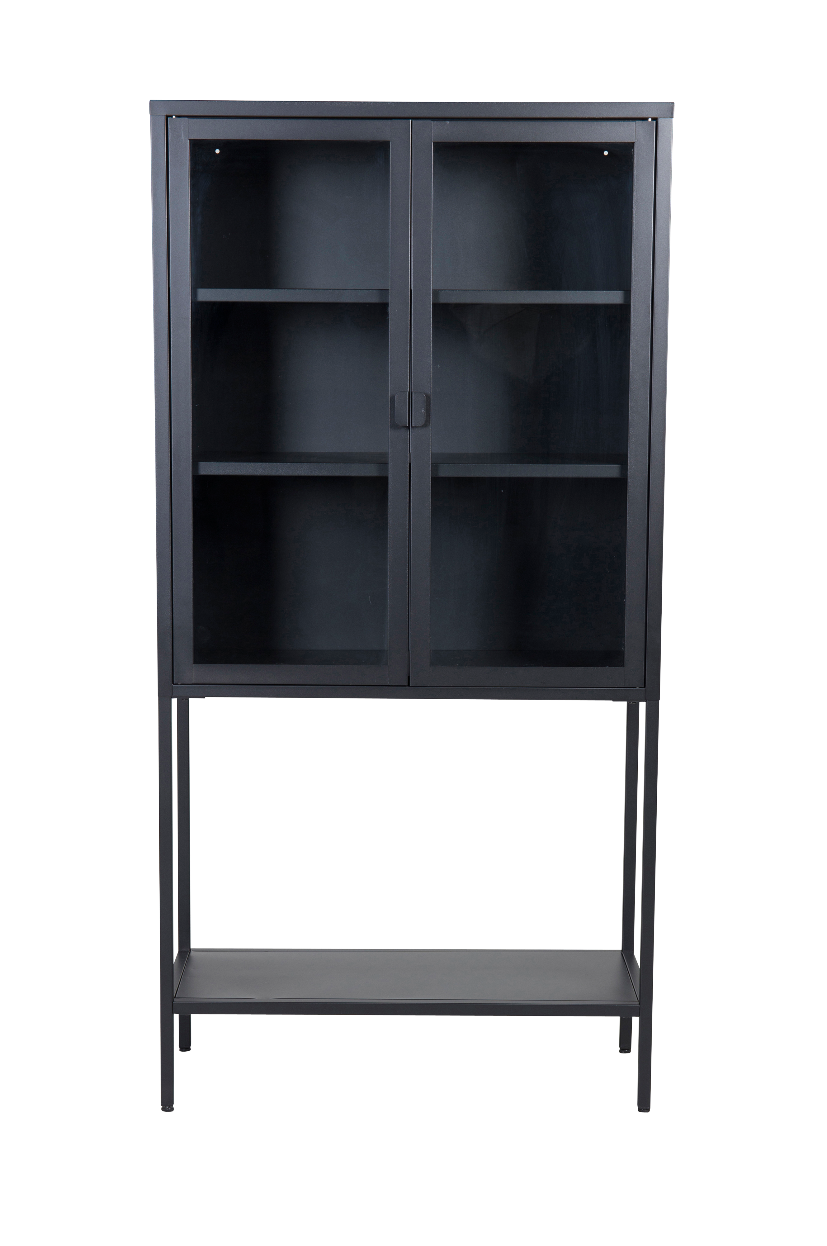 Malmby højt og bredt vitrineskab i malet stål. Vitrineskabet kræver let montering.