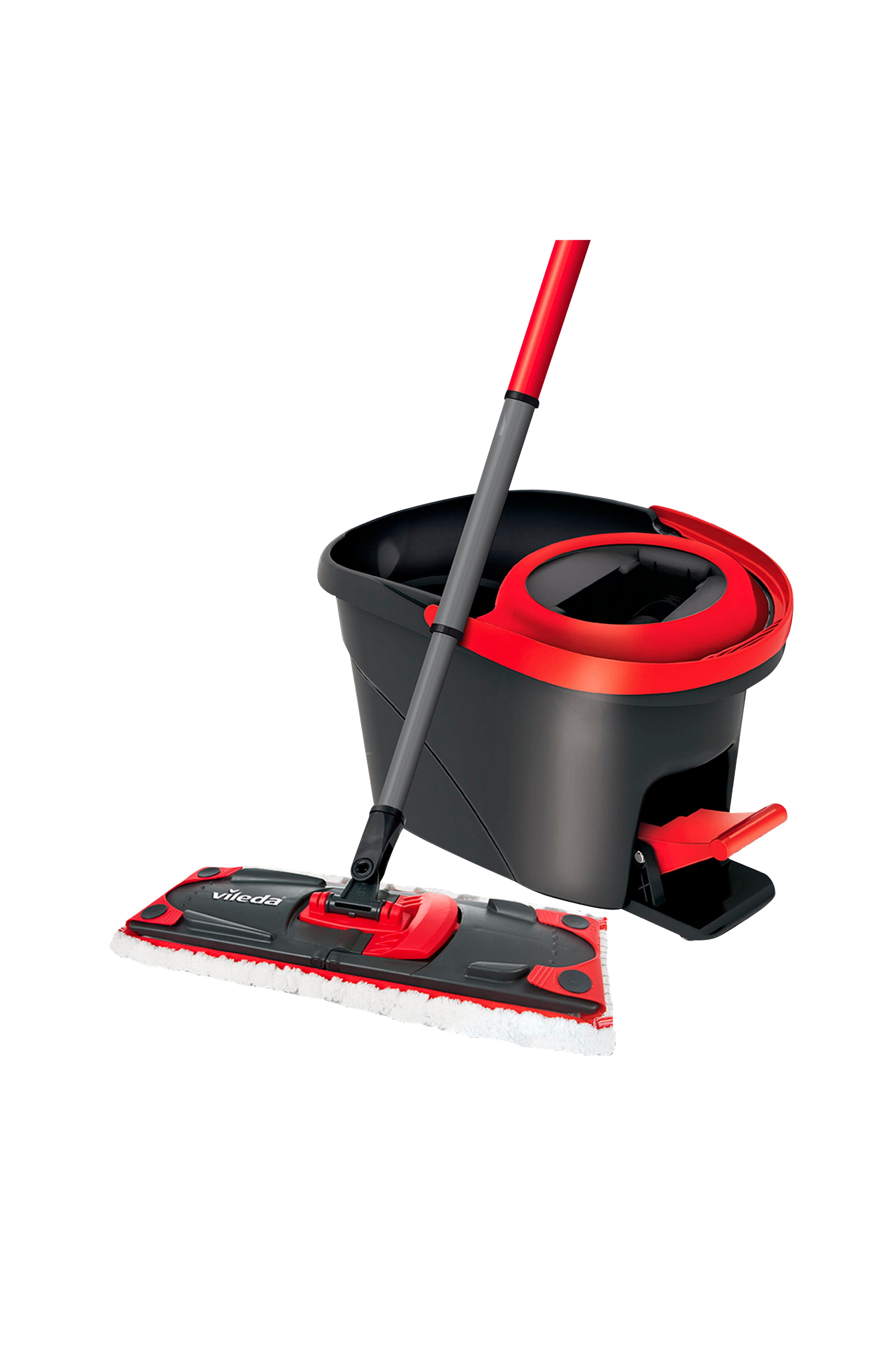 Moppepuden er ideel til flise-, laminat- og trægulve og har både grove fibre til hårdt snavs og fine fibre til mindre partikler og polering. Moppepuden kan vaskes ved op til 60 °C uden skyllemiddel. Spandens vrider bruger en fodpedal til at reducere rygbelastningen og anvender centrifugalkraft til tørre resultater. Den har også et tragtformet design for at forhindre stænk. Desuden leveres moppen med et justerbart teleskopskaft.