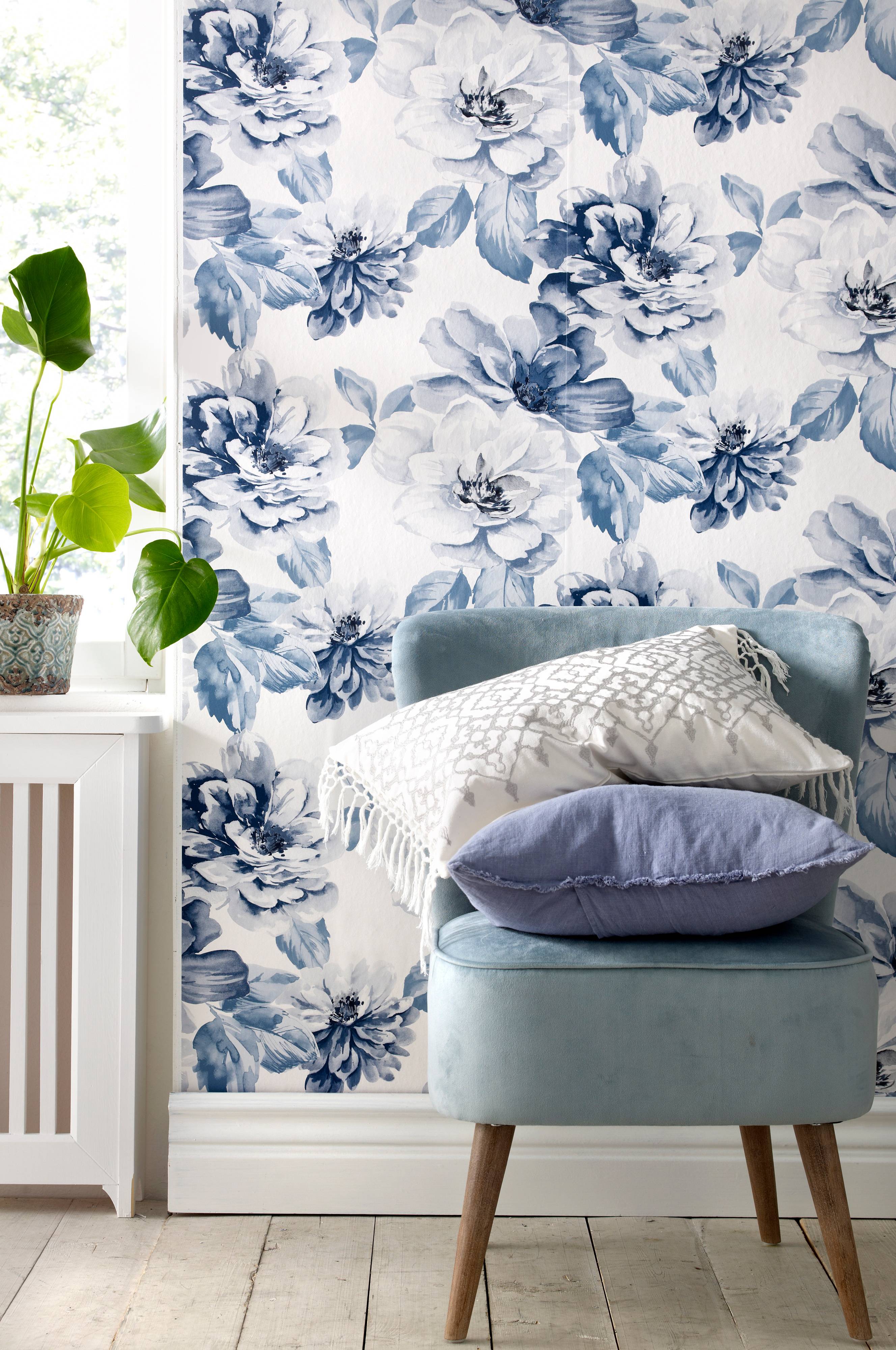 Det er sååå rart! Stort mønster, men giver stadig et roligt indtryk. Har det som grundvæg i soveværelset og malede marineblå vægge ellers. Kan ikke være mere tilfreds!!