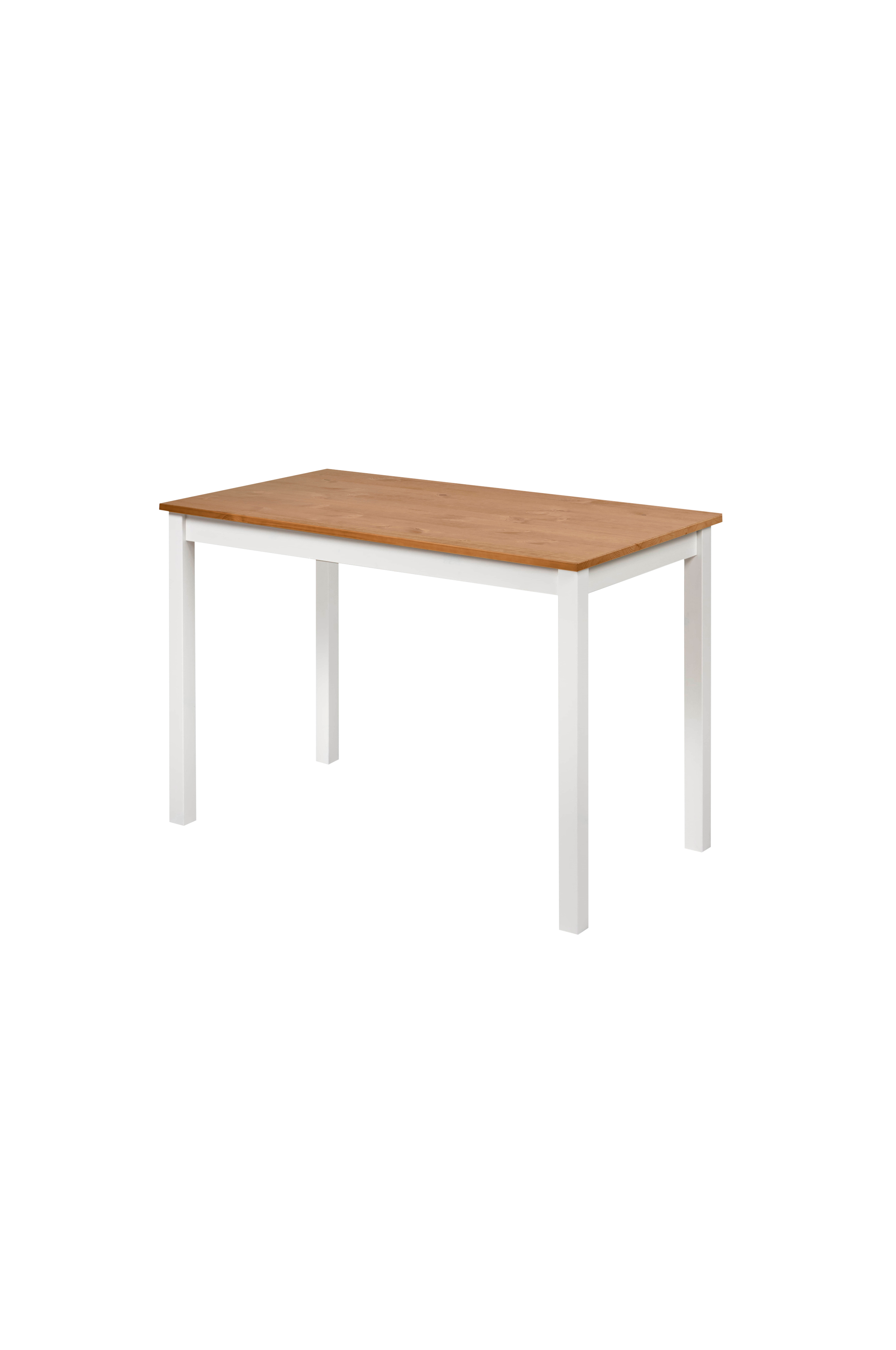 Saml jer omkring dette spisebord af massivt træ med et stilfuldt tofarvet design. Dette kompakte bord passer særligt godt i mindre lejligheder eller spisestuer. Takket være den robuste stil og materialet af høj kvalitet, som kommer fra de allerbedste træsorter, vil dette bord tiltrække sig opmærksomhed og blive rummets omdrejningspunkt.
