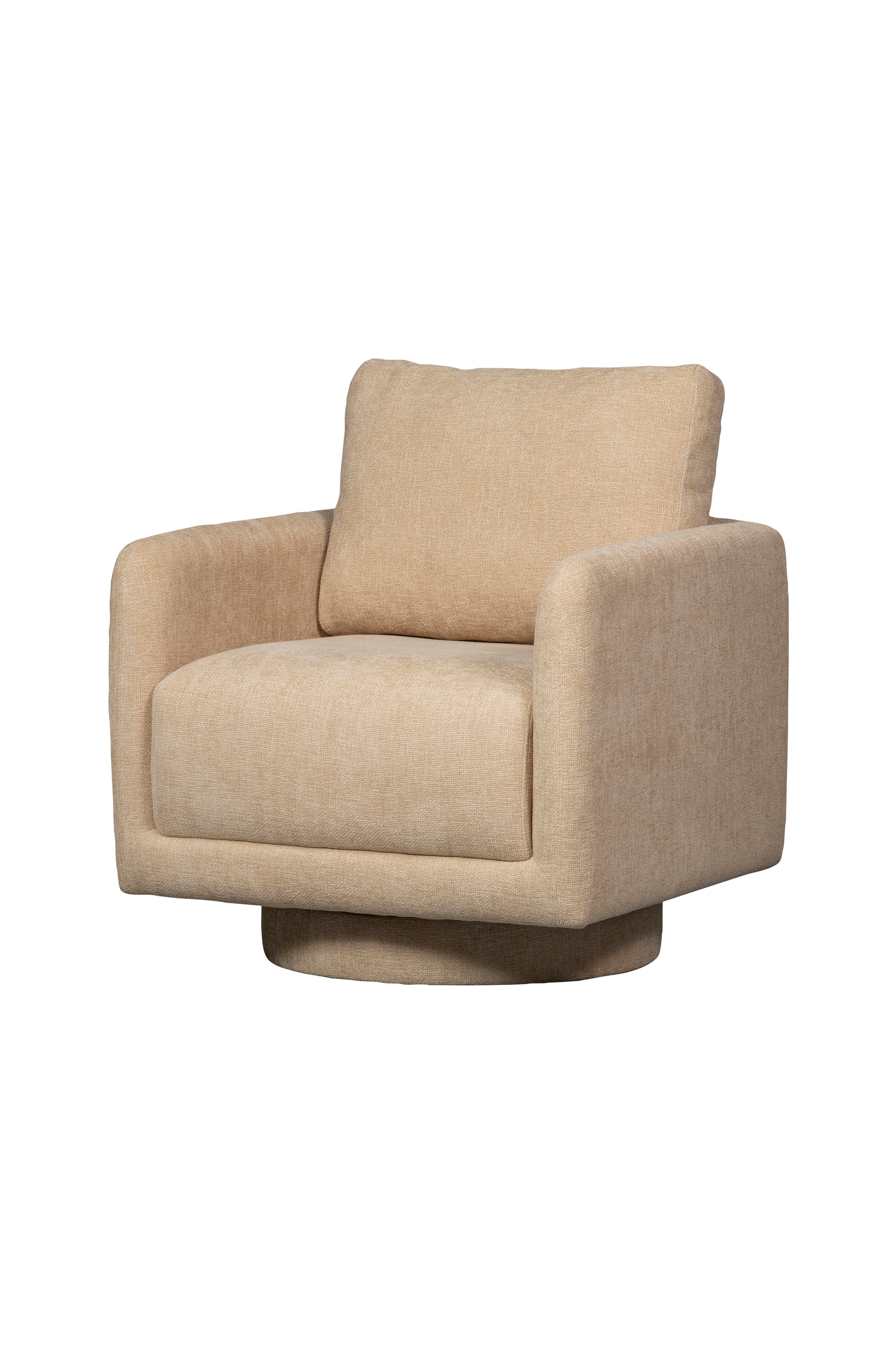 dristig og omfangsrig! Det er den drejelige lænestol Oscar fra kollektionen fra det hollandske indretningsmærke woood. Oscar er dækket fra top til tå i en blød chenille, som giver det firkantede design et venligt udseende. Den drejelige fod giver ekstra luksuriøs siddekomfort.
