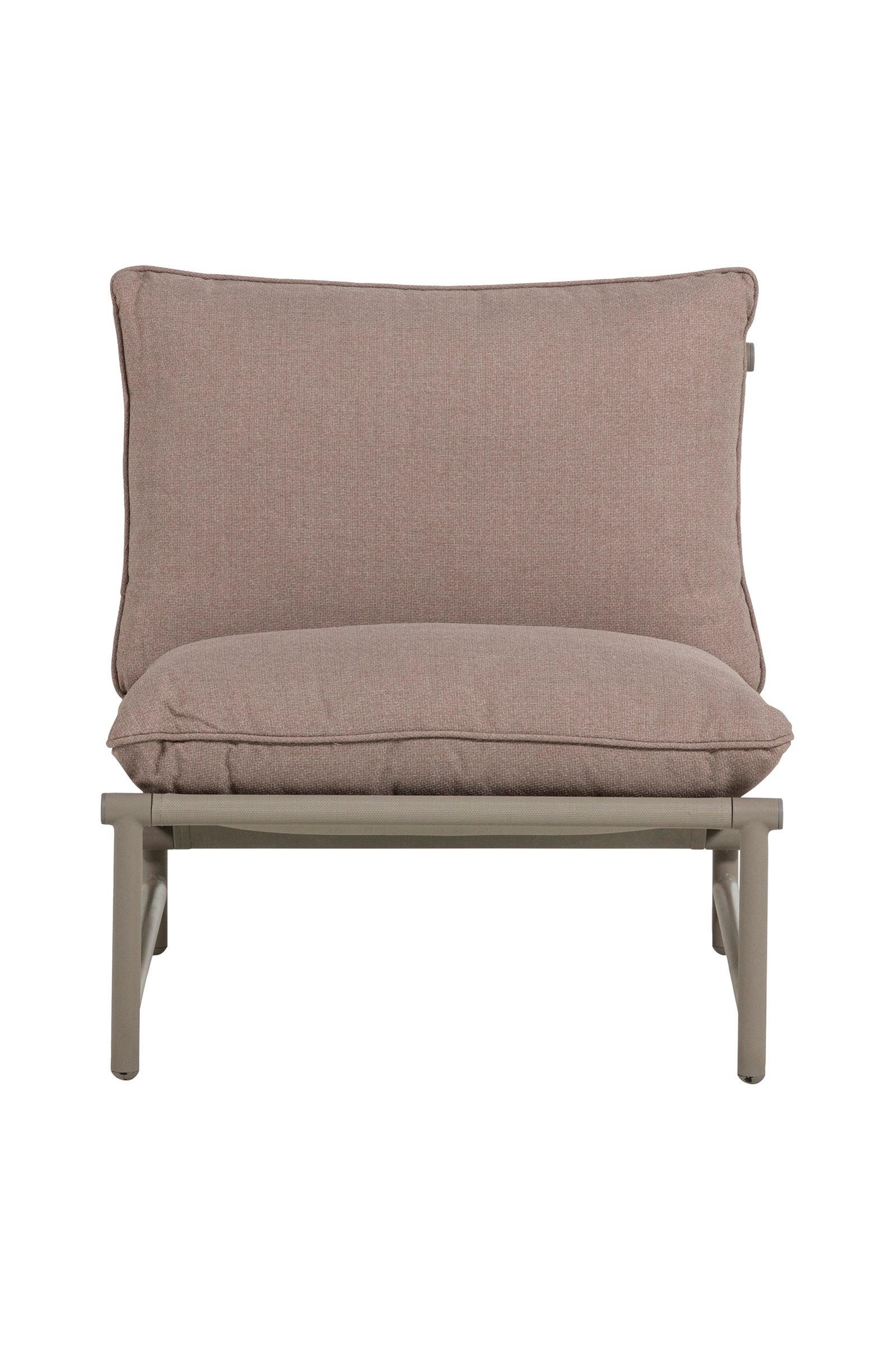 Aluminiumsstellet er specielt udviklet til udendørs brug og er let, hvilket gør stolen nem at flytte. Den udendørs polstring er lavet af olefin. Olefin er et stærkt, vedligeholdelsesvenligt stof, der er fugtbestandigt og uv-bestandigt, hvilket sikrer, at farverne forbliver levende i lang tid. Takket være de bløde fibre er det ideelt til intensiv daglig brug.