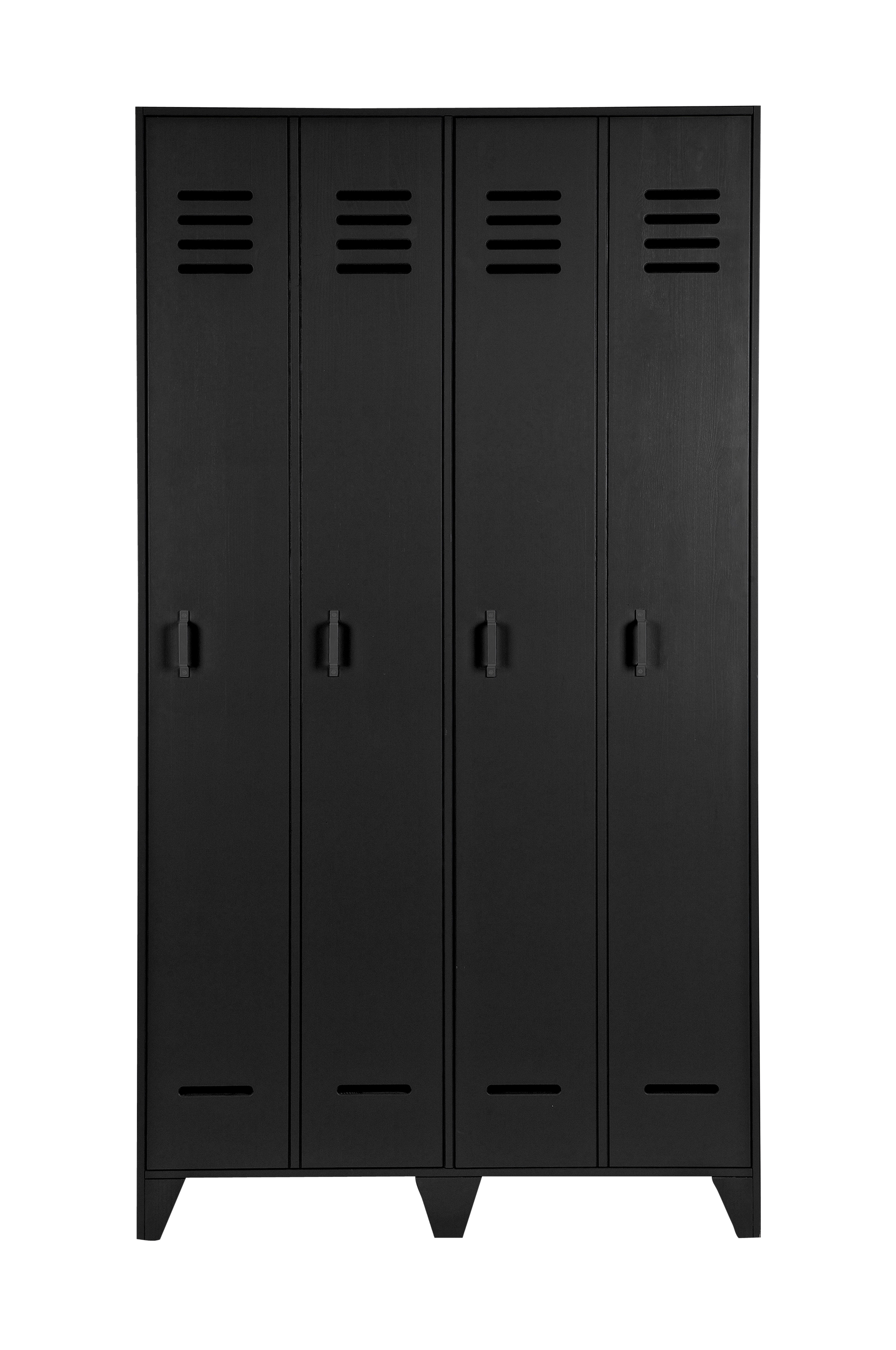 Stijn er en ny serie garderobeskabe fra WOOOD. Det er et robust garderobeskab fremstillet i massivt fyrretræ. Det rummelige garderobeskab med to låger giver god opbevaring. Fire monterede hylder bag hver låge. For at give en fin effekt ser det ud som om skabet har fire låger, men af praktiske årsager er det to større låger. Dette garderobeskab er perfekt til soveværelset, men også meget trendy til f.eks. kontoret.