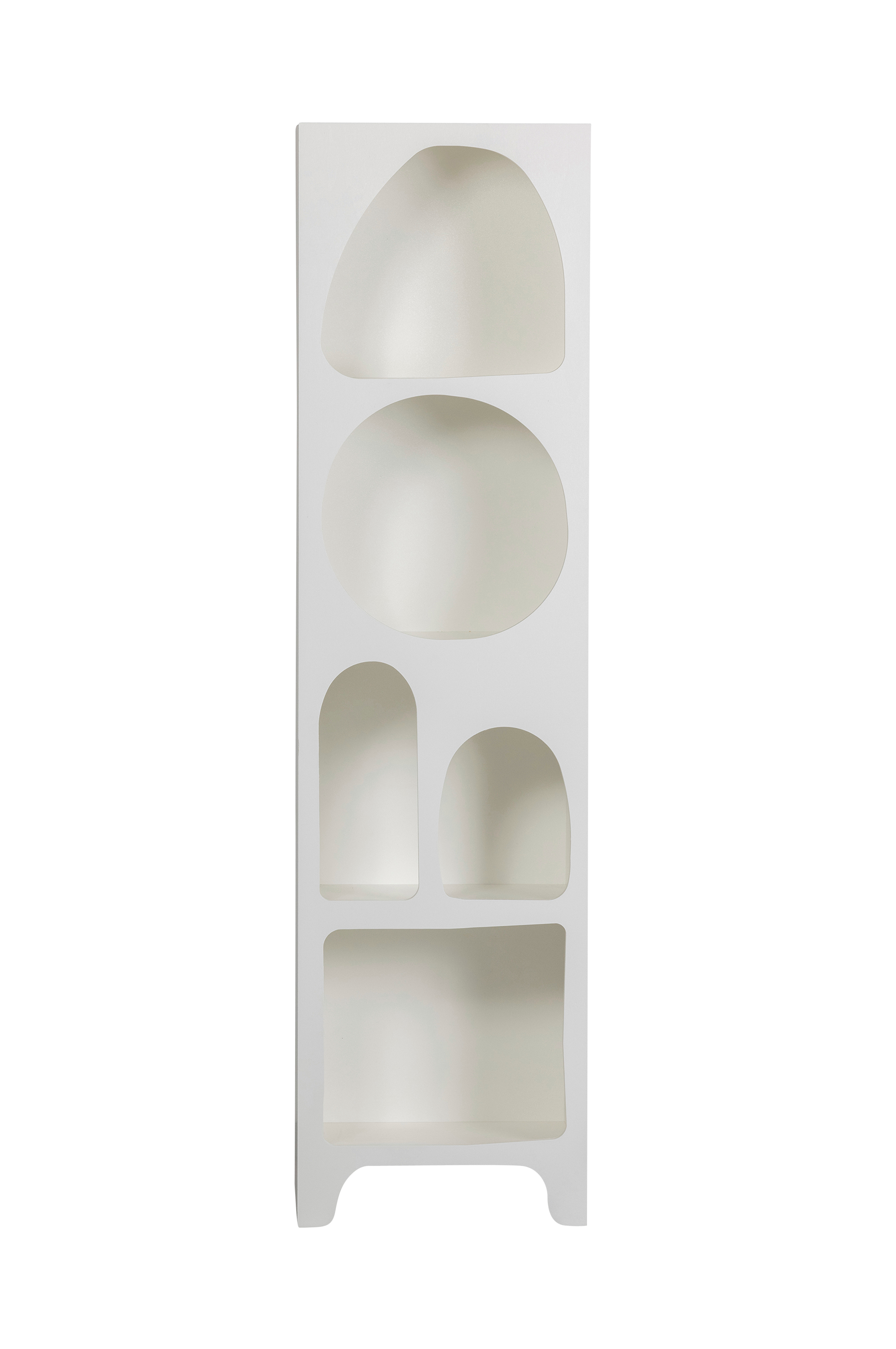 Med det hvide skab Caz, fra en kollektion fra det hollandske mærke WOOOD, får du et trendy og moderne møbel i dit hjem. Caz skab er lavet i hvidmalet plywood og har fem rum. Stil finurlige dekorative genstande i Caz skab for at dekorere dit hjem på en unik måde. Den store størrelse gør skabet til rummets blikfang.