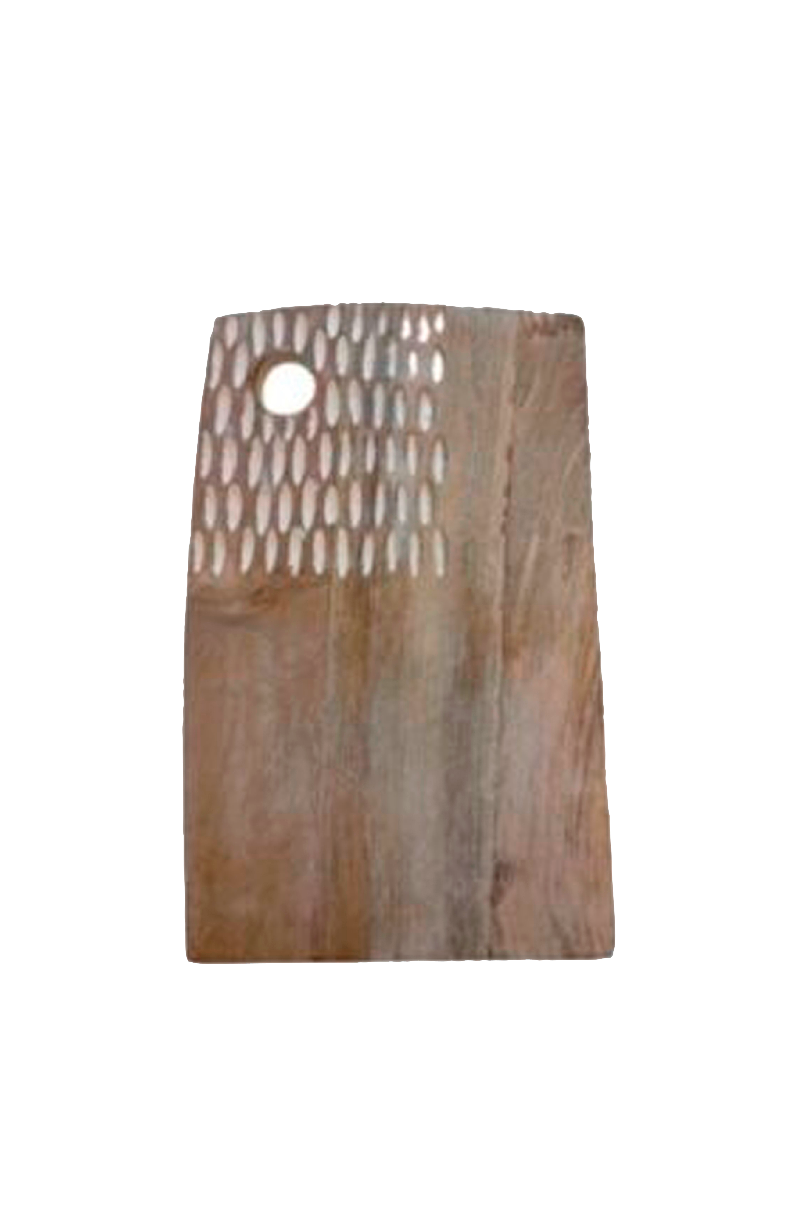 Rustik håndlavet bakke af mangotræ i trendy boho-stil. Sødt mønster i det ene hjørne.