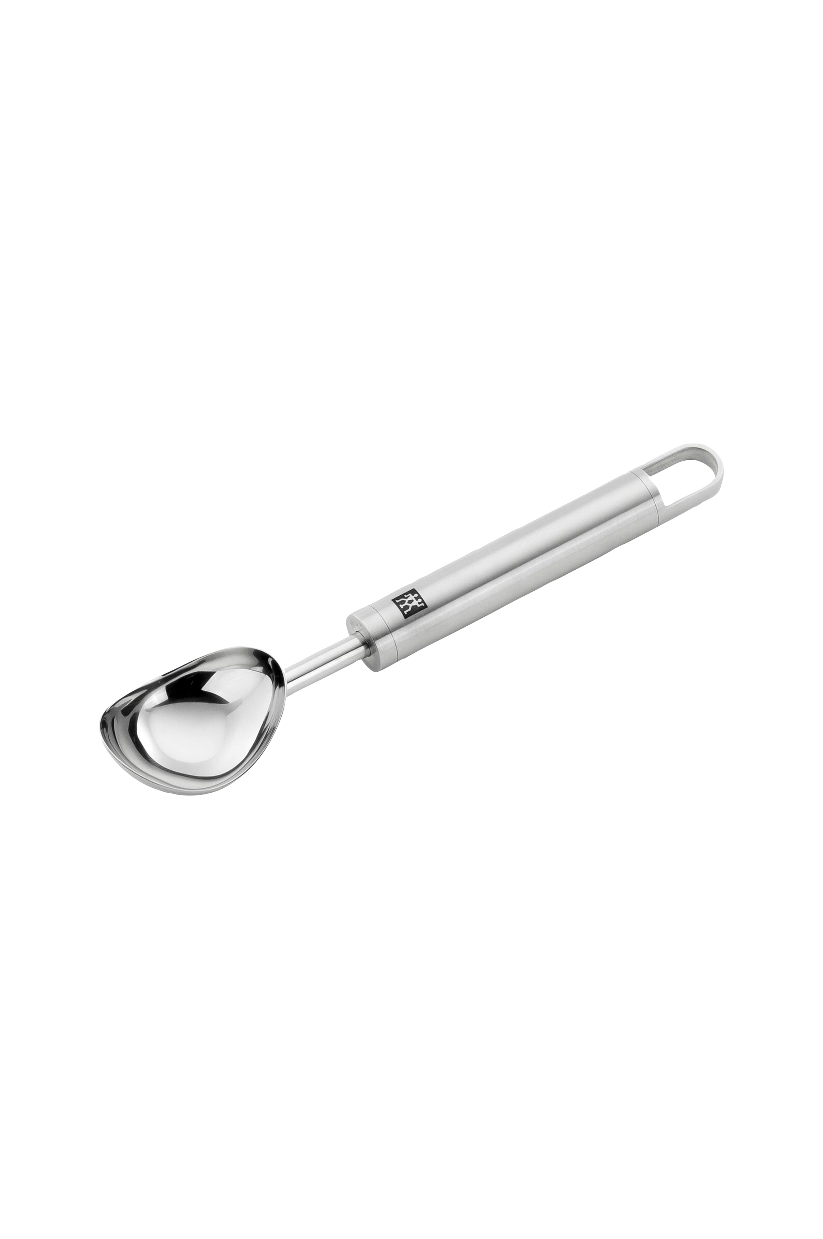 Isske fra ZWILLING Pro-serien. Fremstillet i rustfrit stål og utroligt robust. Det betyder, at det overhovedet ikke er et problem at tage særlig hård is. Det sømløse design garanterer maksimal hygiejne og nem rengøring i opvaskemaskine. Isskeen er formet, så den ligger perfekt i hånden, det runde håndtag trykker ikke ind i håndfladen og den har en praktisk løkke så den kan hænges op. Designet af Matteo Thun og Antonio Rodriguez, som lægger stor vægt på et ensartet formsprog og perfekt funktionalitet.