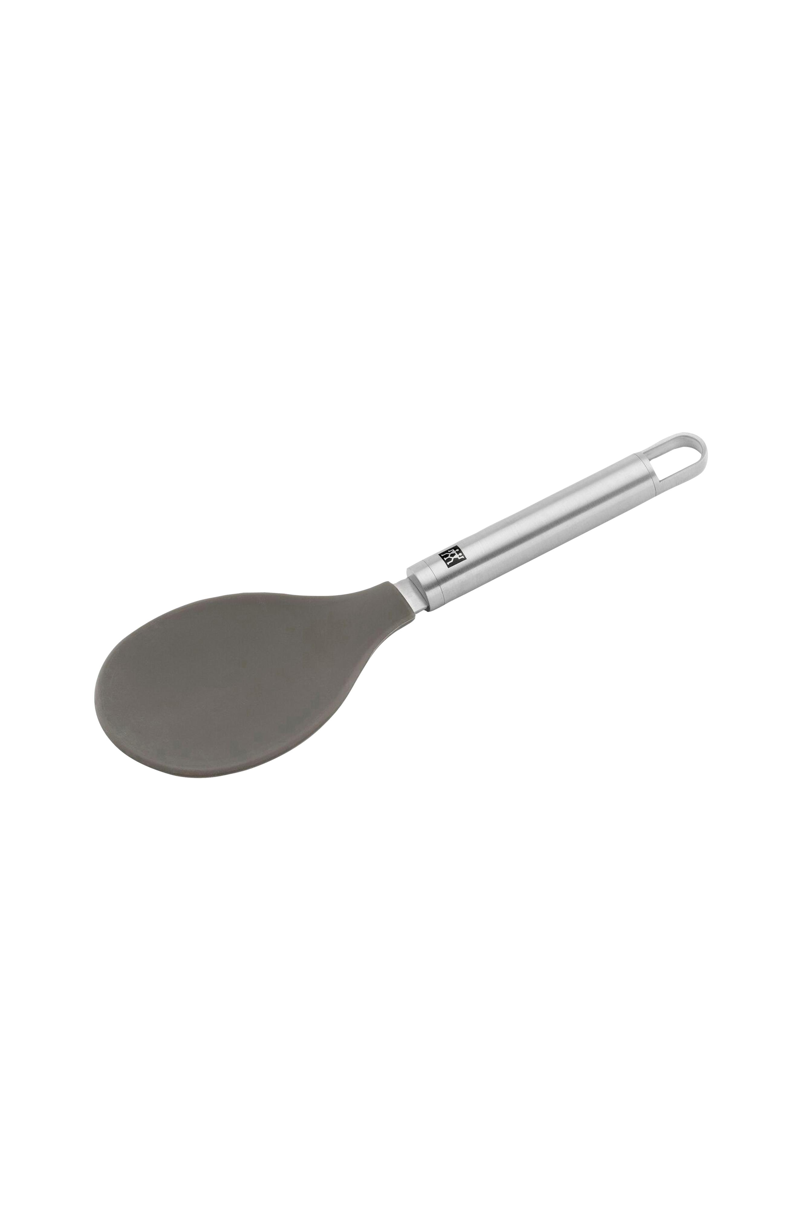 Med ZWILLING Pro-seriens silikoneske kan du portionsanrette og servere ris eller anden mad. Dens kompakte størrelse gør skeen ideel til at servere selv klistrede ris, da det korte håndtag er ergonomisk designet til at overføre kraften optimalt. Skeen kan også bruges til at tilberede og servere couscous og kartoffelmos. Håndtaget er lavet af smukt mat premium rustfrit stål og skeen er lavet af fødevaresikker, varmebestandig silikone.