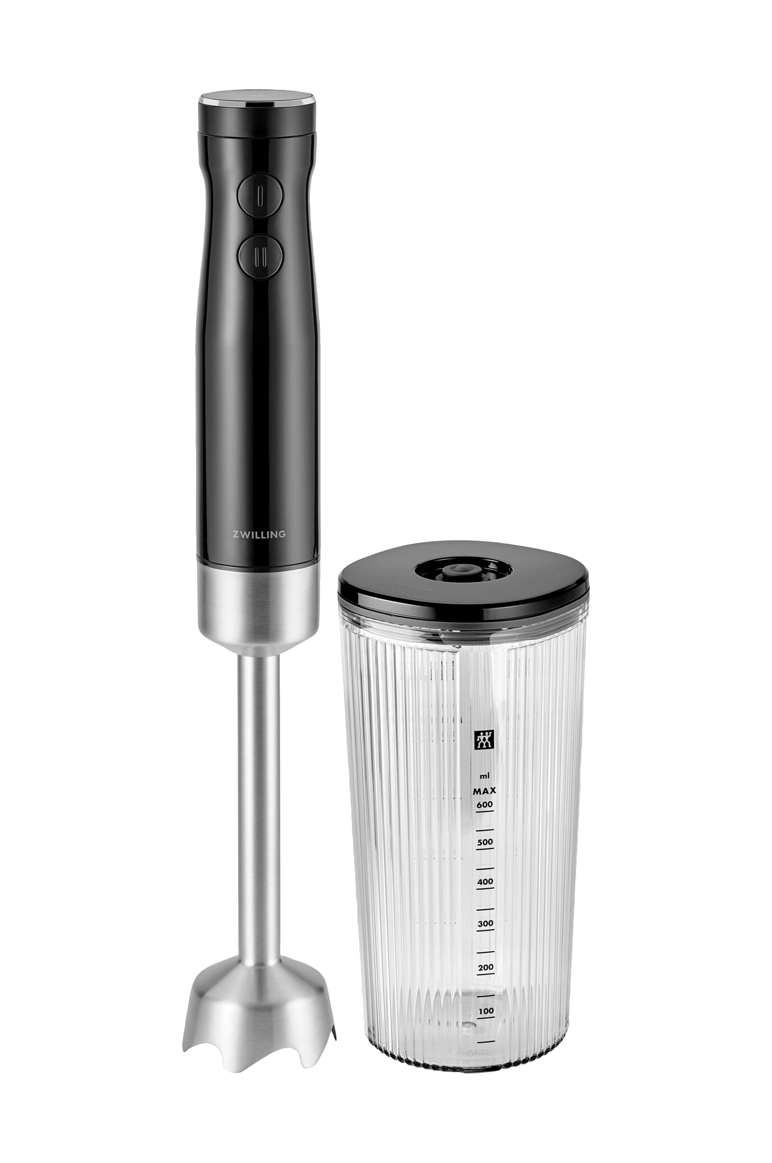 Det skarpe Zwilling Winglet-blad med "piranha-tænder" sikrer de fineste blenderesultater. Det klokkeformede skaft forbedrer håndteringen og er mere ergonomisk. Den fungerer perfekt sammen med den medfølgende blenderkande eller direkte i gryden. Kanden på 600 ml er lavet af BPA-fri plast og leveres med et låg, der er kompatibelt med vores vakuumpumpe. Du kan f.eks. tilberede saucer om morgenen, vakuumforsegle dem og nyde dem friske om aftenen, eller forberede ingredienser dagen før og blot blende dem, når det er tid til aftensmad.